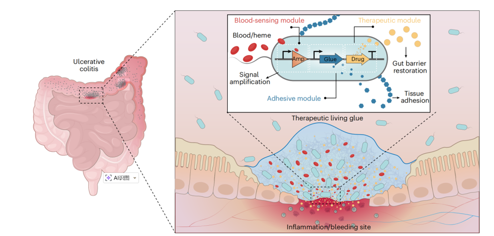 草莓视频 黄鹏教授团队在Nature Biotechnology发表智能活胶水自主感知与精准治疗炎症性肠病研究成果